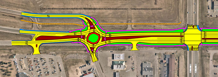 Stage 1 construction on Hwy 197 includes a roundabout, boulevard space and a multi-use trail on both sides of the highway.