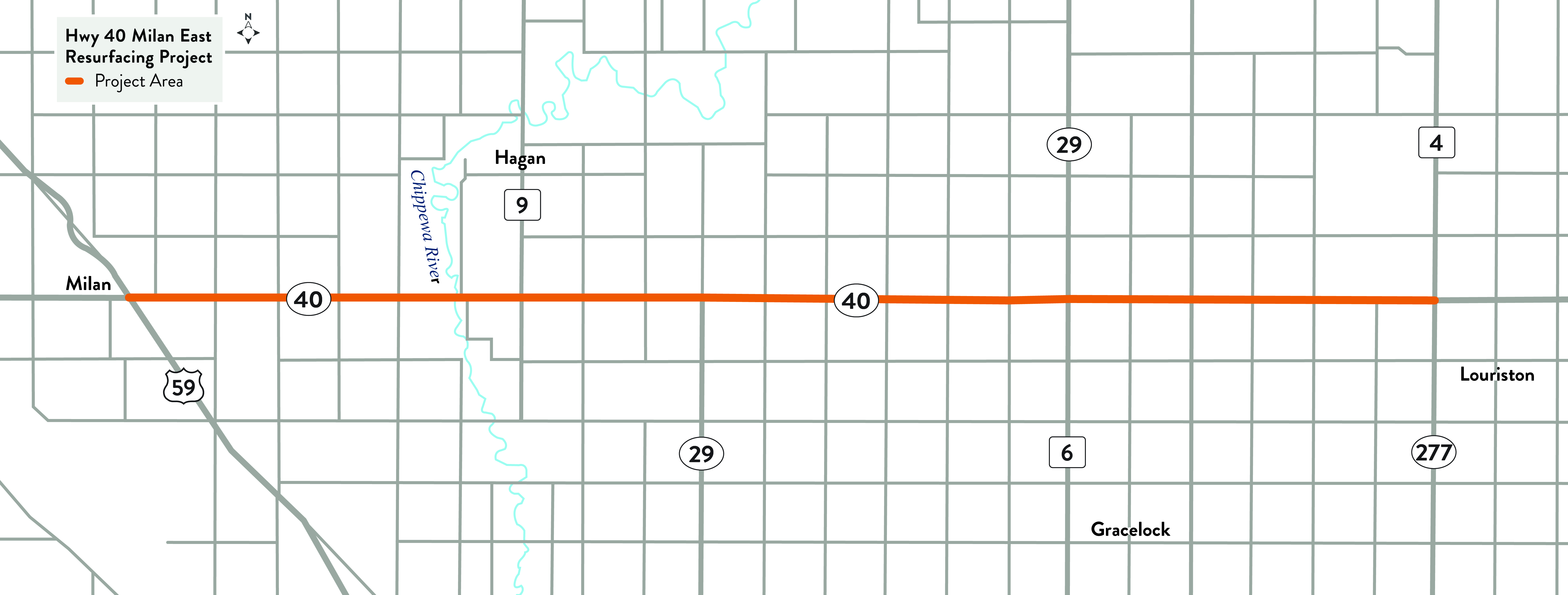 Project location: Hwy 40, from Hwy 119 west of Milan to 0.1 miles west of 5th street in Milan.
