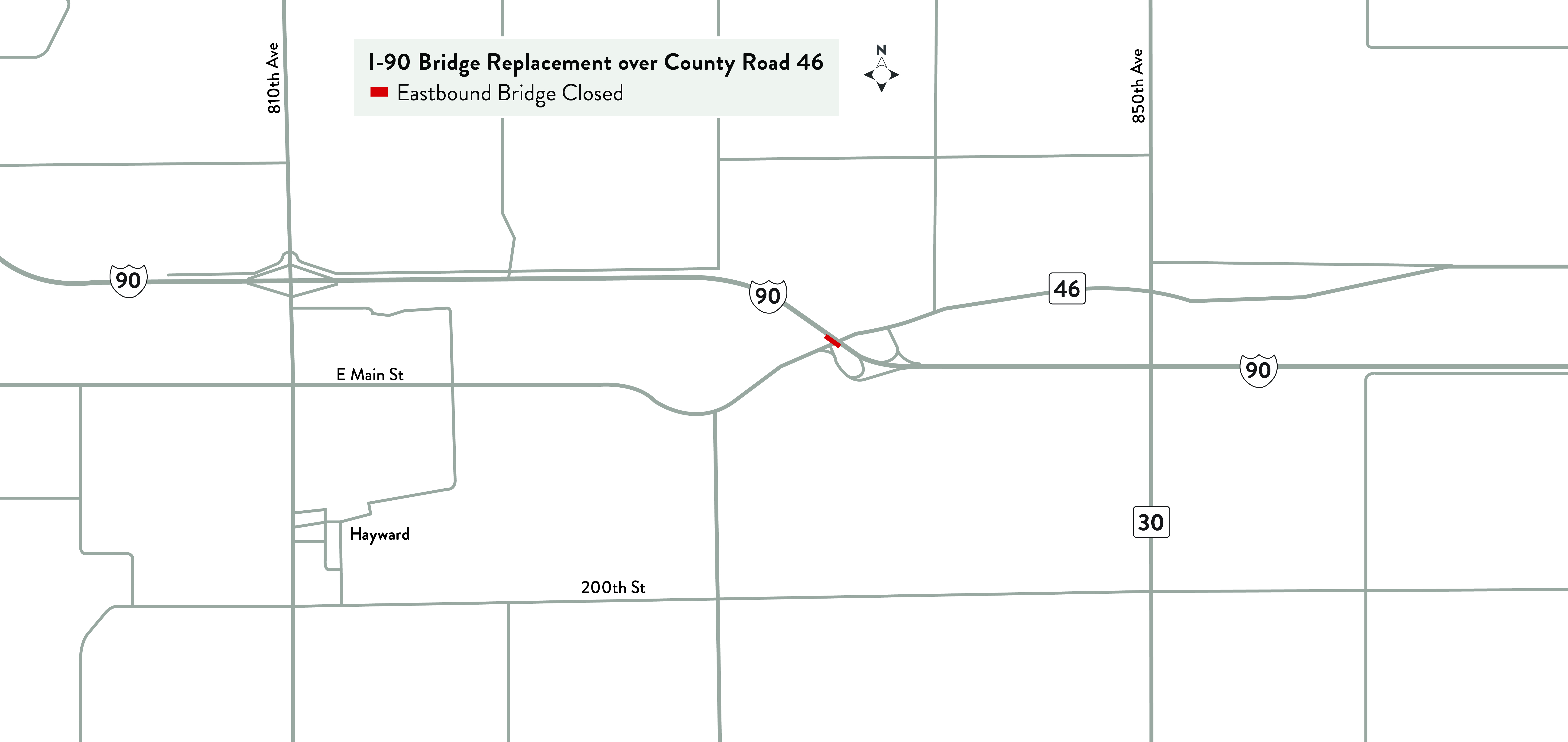 In 2028, MnDOT plans to replace the eastbound I-90 bridge over Freeborn County Road 46. We'll also make improvements on the eastbound exit ramp.