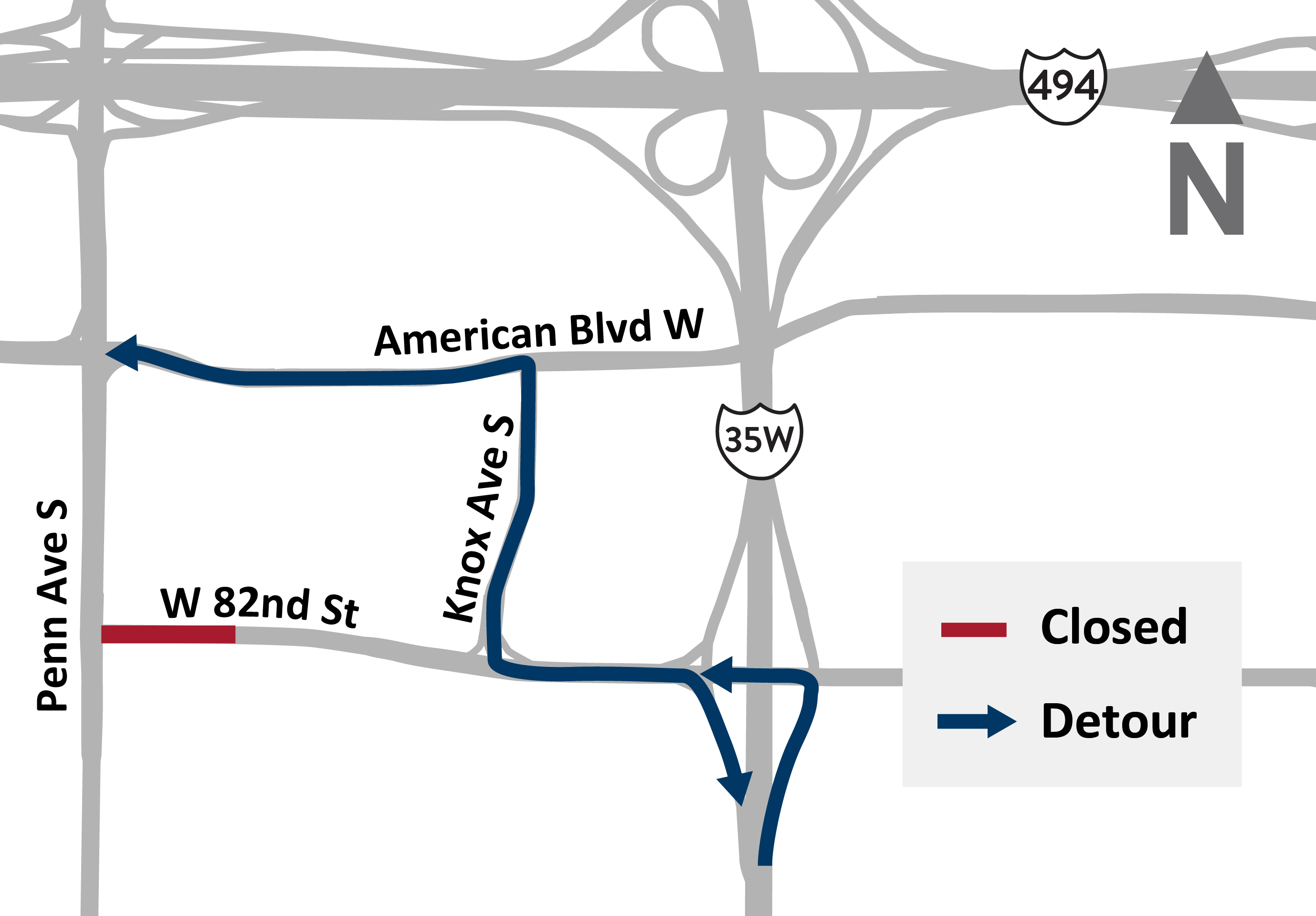 - Nicollet Ave. is closed between American Blvd. and 82nd St.