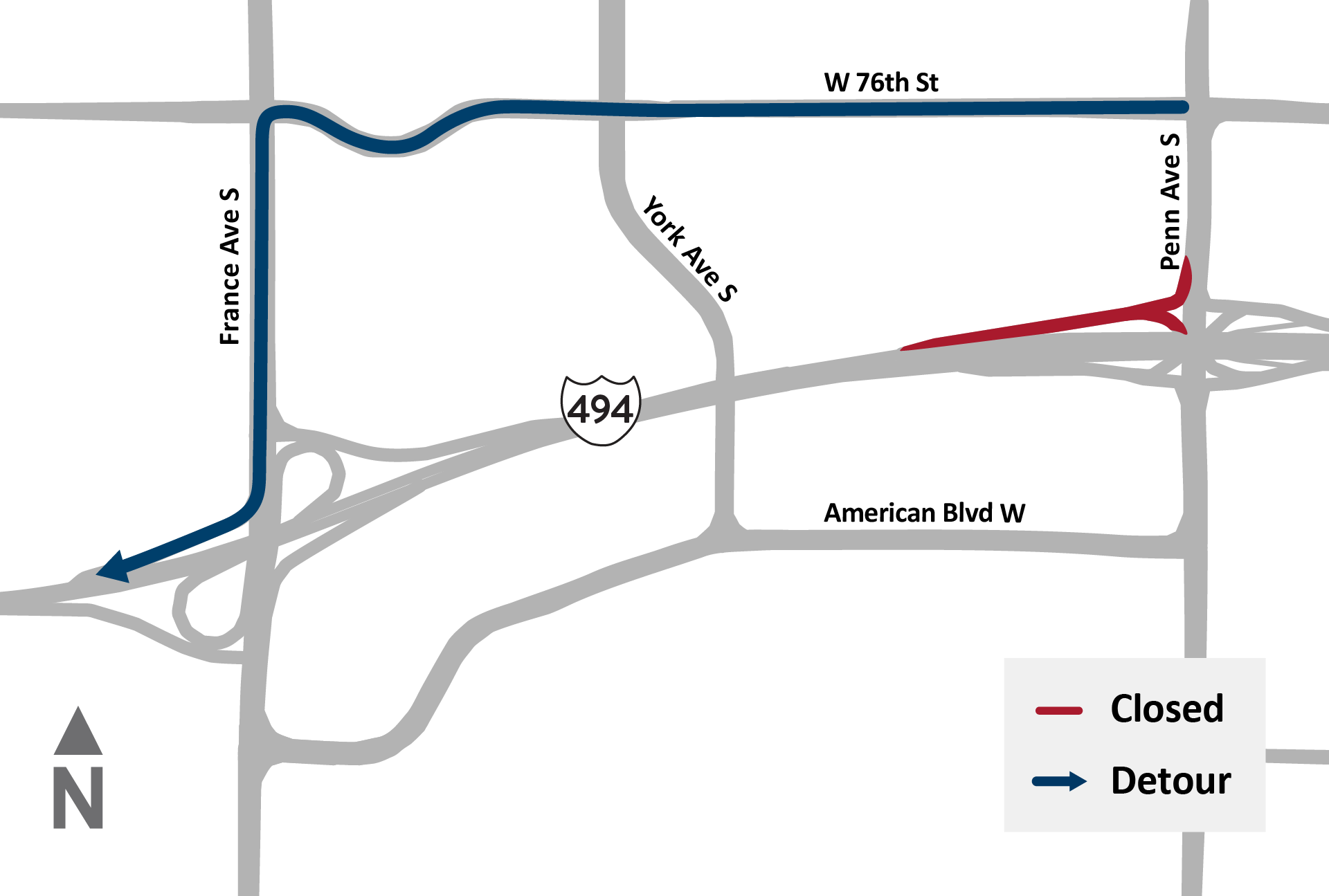 - The ramp from Penn Ave. to westbound I-494 is closed