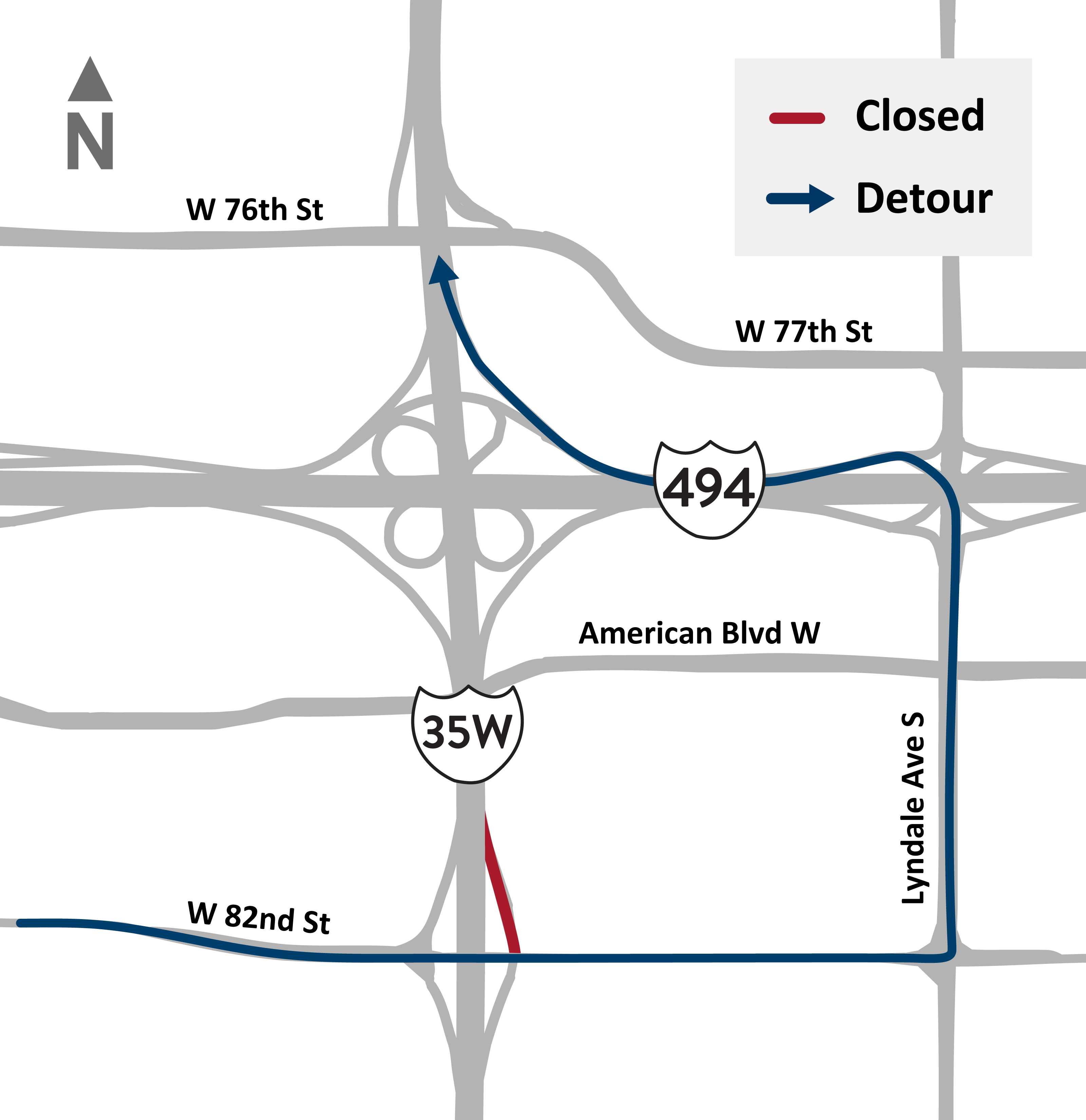 • Expect short term ramp closures along I-35W between 82nd St. and 76th St.