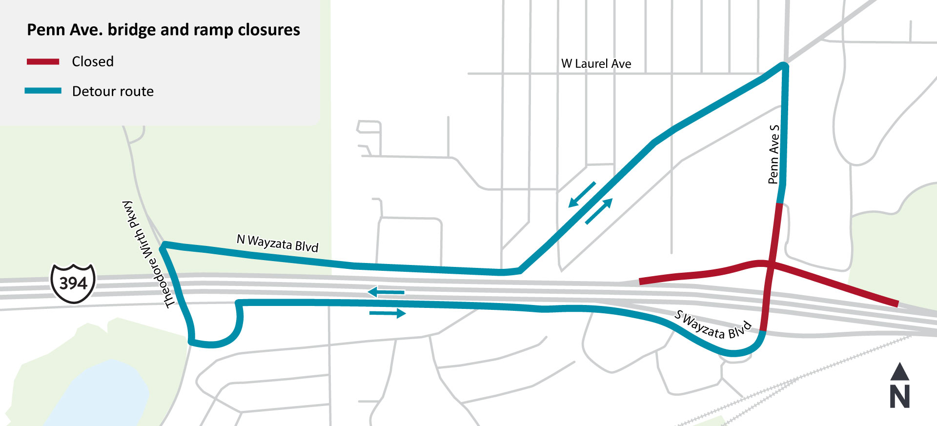 • Detour: Louisiana Ave. to Wayzata Blvd. to Park Place Blvd/Xenia Ave.